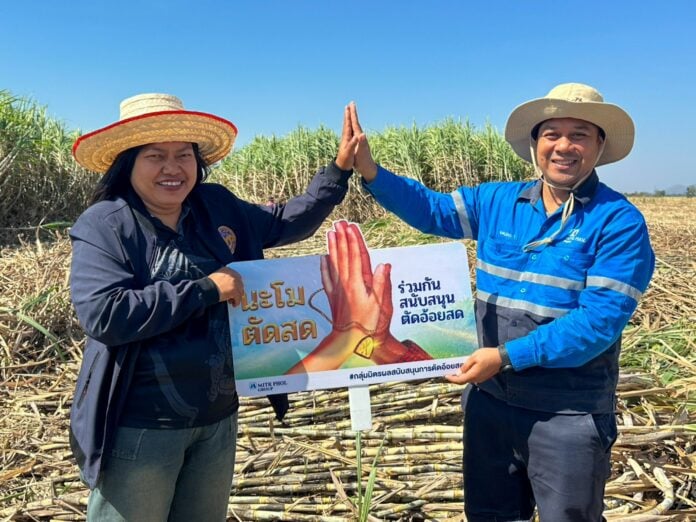 • ขับเคลื่อนการตัดอ้อยสดและพลังงานหมุนเวียนจากภาคเกษตรไทย – สนับสนุนการตัดอ้อยสดผ่านแคมเปญ “นะโม ตัดสด” ควบคู่โครงการรับซื้อใบอ้อย เพื่อนำไปใช้เป็นเชื้อเพลิงผลิตไฟฟ้าชีวมวลพร้อมสร้างรายได้เพิ่มให้เกษตรกร โดยปัจจุบันมีปริมาณอ้อยสดเข้าสู่โรงงานมากกว่า 96% และมีการรับซื้อใบอ้อยต่อเนื่องเป็นปีที่ 8 สร้างพลังงานสะอาดจากภาคเกษตรไทย และเป็นองค์กรต้นแบบในอุตสาหกรรมอ้อยและน้ำตาลที่เติบโตอย่างยั่งยืน